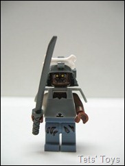 Kind of excited about this guy, as he comes with an armour plate that slide over the normal Lego chest. on his thoighs is a printed scale mail cover and the grey bit on his chest is his breast plate. The face is well done, with a little moustache and pencil thin beard down the side.