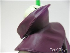 The head sculpt is a simple skull, with some nice details on it, he has the plates that most people would have on their heads, and paint to distinguish his teeth and eyes. I really like the read paint used to make his eyes. EEEeeeevvviiilll! The cape again works it’s magic with some nice detail on the front with a cool sculpted and attached rope to hold it around his neck. Of course his head glows and the black really comes into play when looking at it like this.