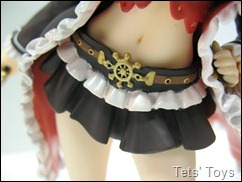She has a sexy trim stomach, I really like the helm’s wheel they use for her belt buckle! Her impressive assets are ‘contained’ within a bustier. Just. Which has some nice sculpting on it, and all the little holes which add to the lacy effect are cleanly cut.