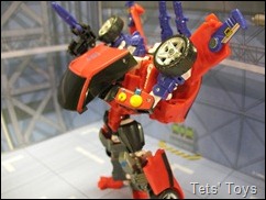 I like this toy. The car mode is cool, it has all the looks of Tracks and now he is red and we all know that red cars go faster!