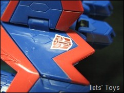 It’s a nice enough looking jet from the top, but sadly with this type of toy, due to the different aesthetics of the robot (i.e organic style), if you look underneath, you can see the robot parts under the plane. But still, it manages to cover the head up well at the very least. The arms, well they just hang off the side and the legs fold into the chest. The landing gear does flip up nicely into the body I will add.
